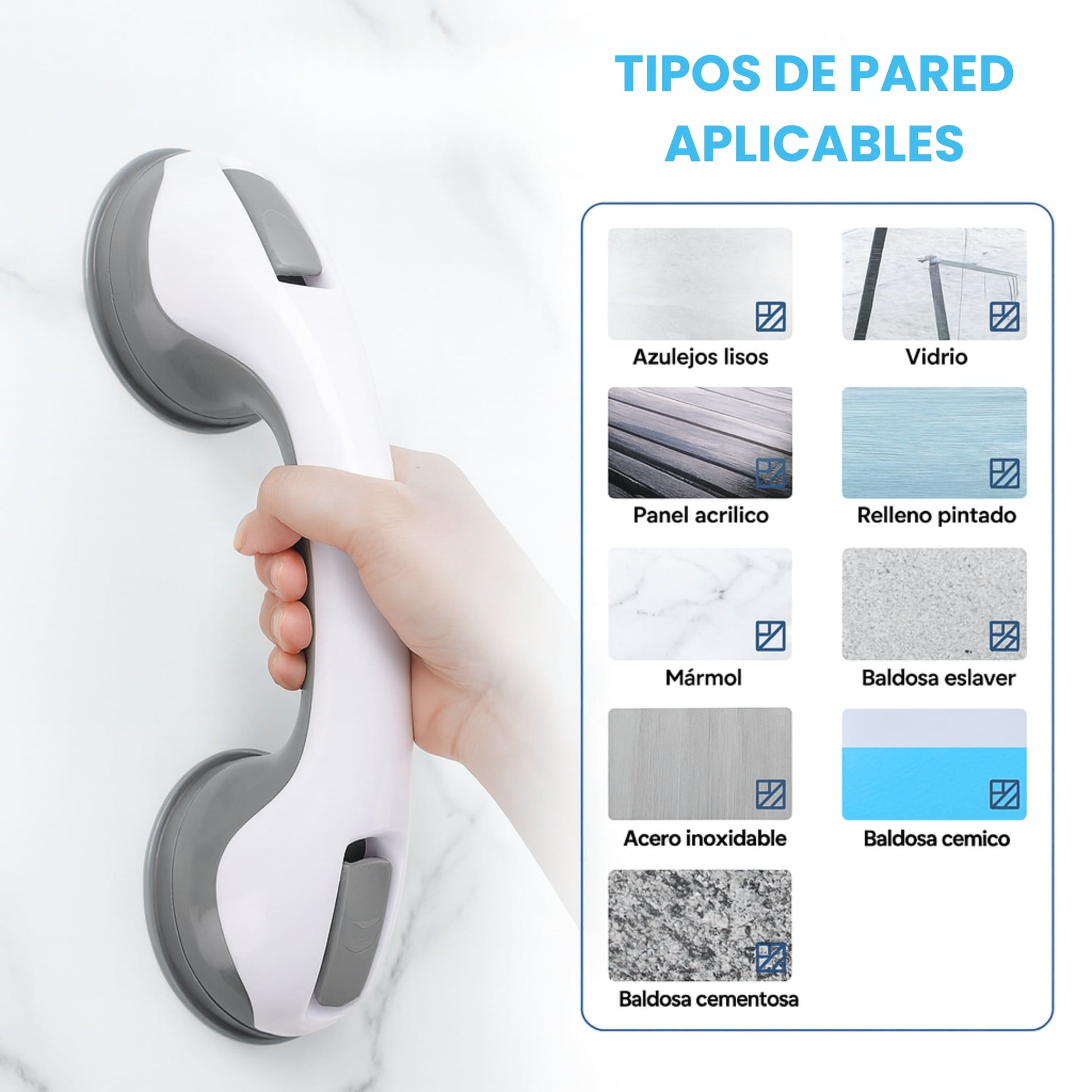 - Previene caídas en la ducha, tina o baño.